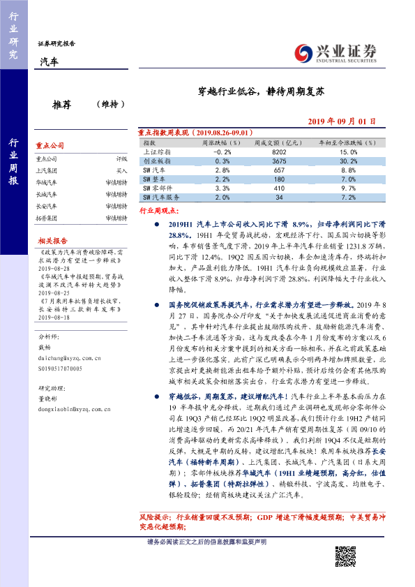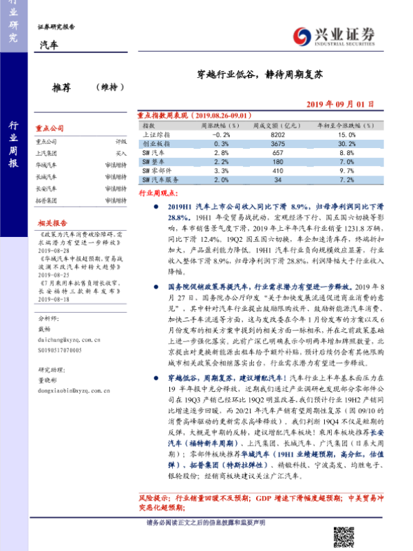 【兴业证券】【20190901】20190901-兴业证券-汽车行业周报:穿越行业低谷,静待周期复苏-11页