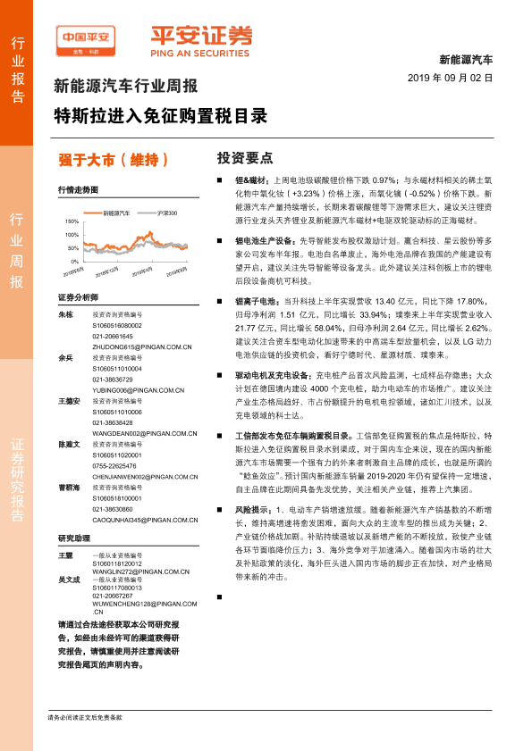 【平安证券】【20190902】20190902-平安证券-新能源汽车行业周报:特斯拉进入免征购置税目录-11页
