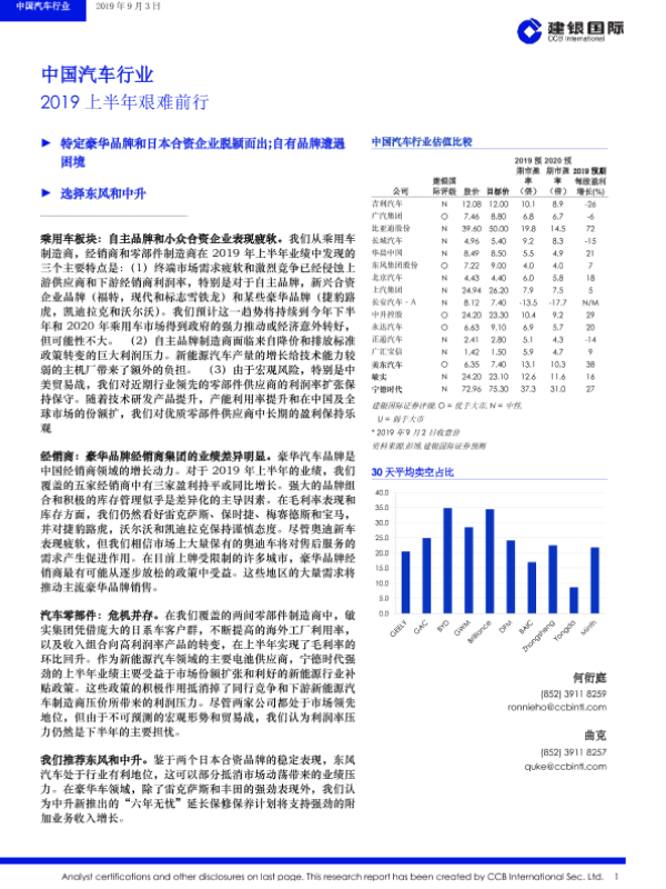 【建银国际】【20190903】中国汽车行业:2019上半年艰难前行-7页