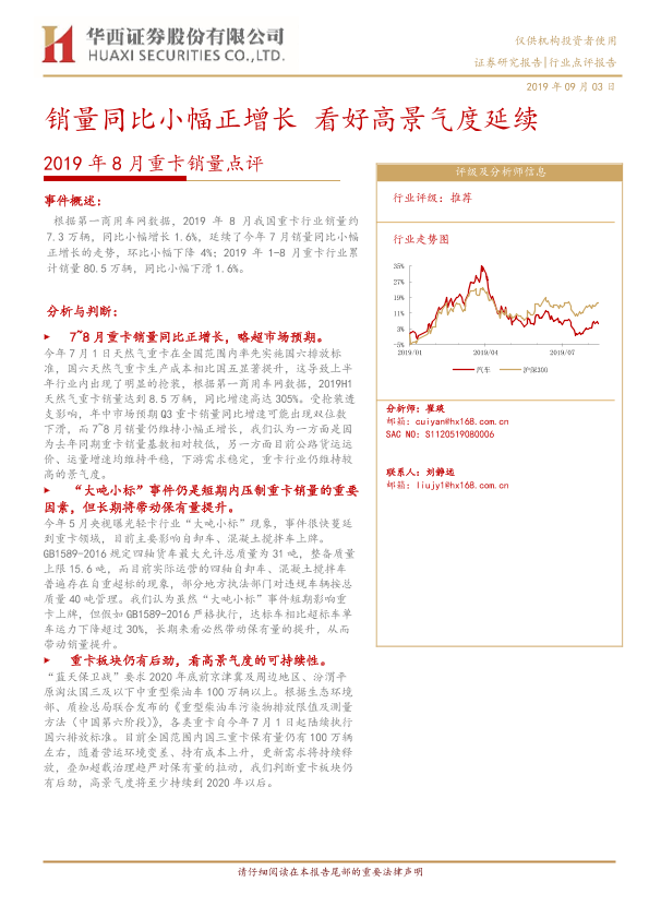 【华西证券】【20190903】2019年8月重卡销量点评:销量同比小幅正增长 看好高景气度延续-4页