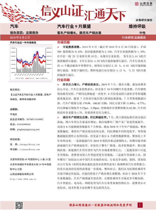 【山西证券】【20190902】汽车行业9月展望:客车产销增长,乘用车产销改善-30页