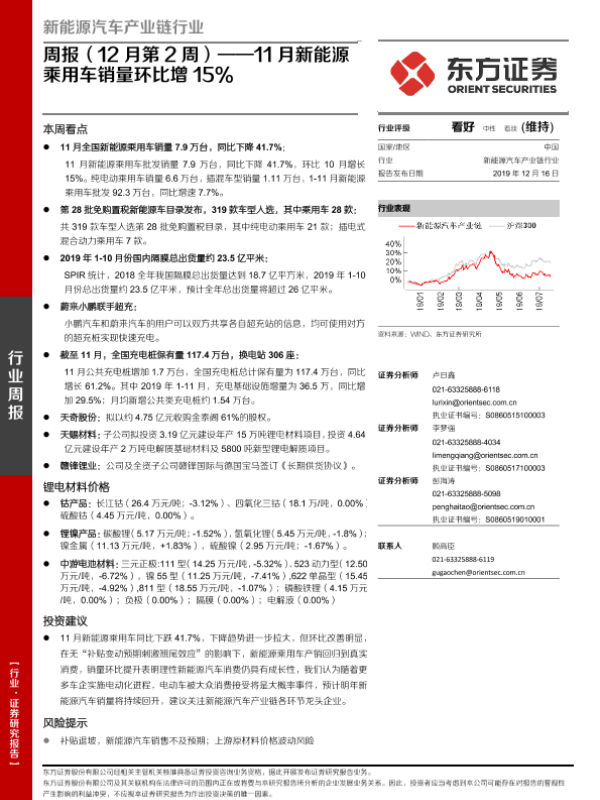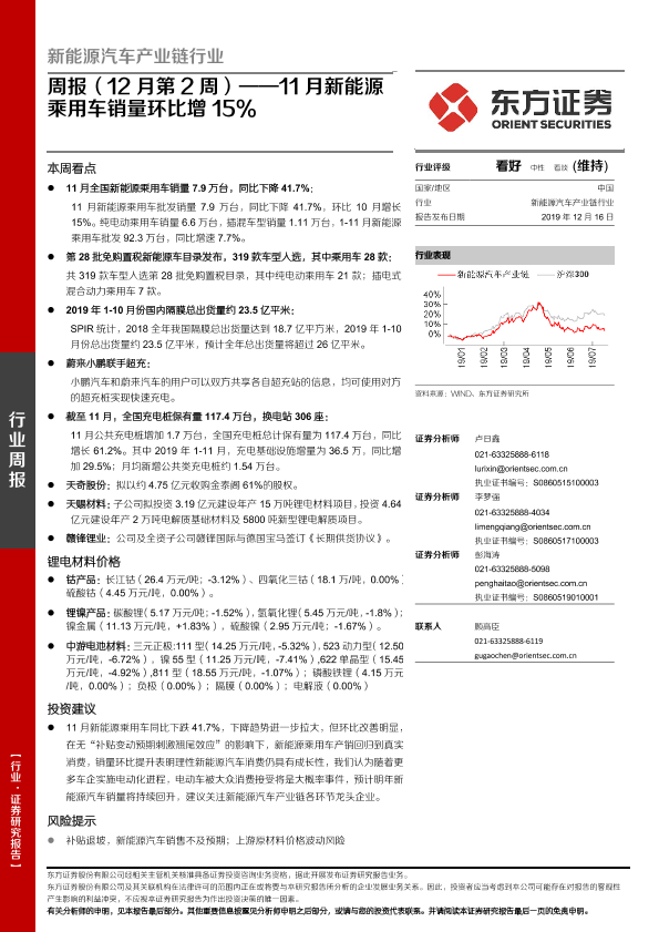 【东方证券】【20191216】新能源汽车产业链行业周报(12月第2周):11月新能源乘用车销量环比增15%-23页