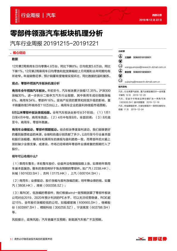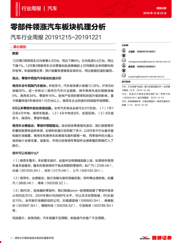【西部证券】【20191222】20191222-西部证券-汽车行业周报:零部件领涨汽车板块机理分析-23页