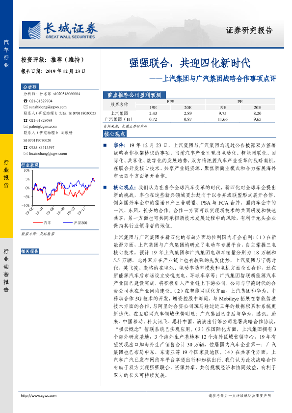 【长城证券】【20191223】20191223-长城证券-汽车行业:上汽集团与广汽集团战略合作事项点评:强强联合,共迎四化新时代-3页