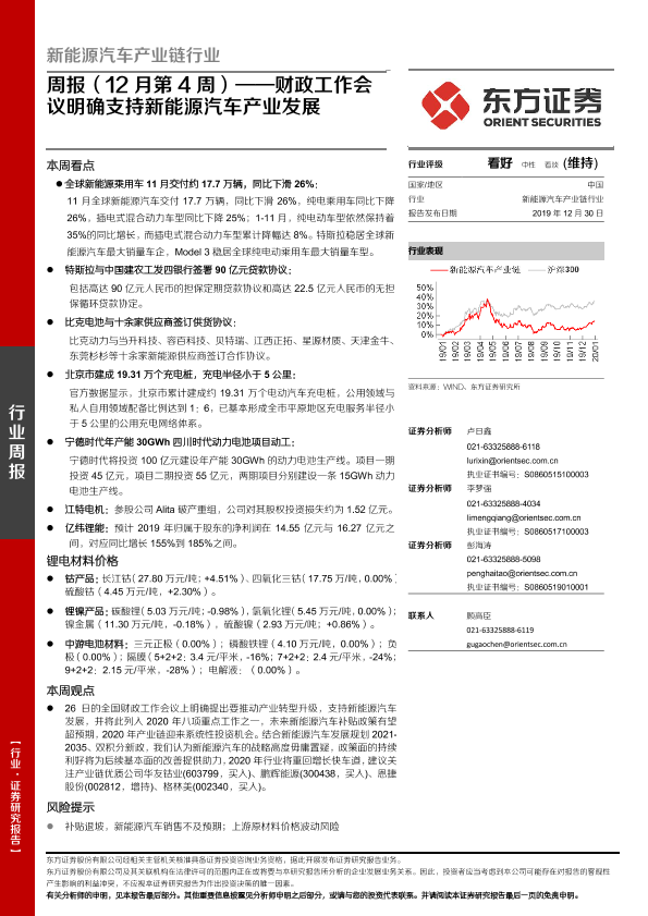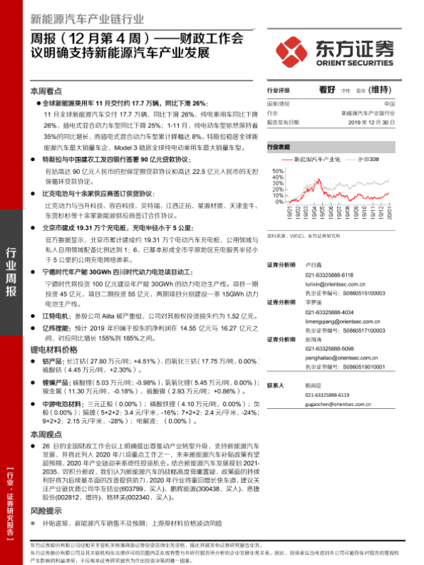 【东方证券】【20191230】新能源汽车产业链行业周报(12月第4周):财政工作会议明确支持新能源汽车产业发展-23页