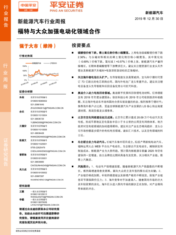 【平安证券】【20191230】新能源汽车行业周报:福特与大众加强电动化领域合作-10页