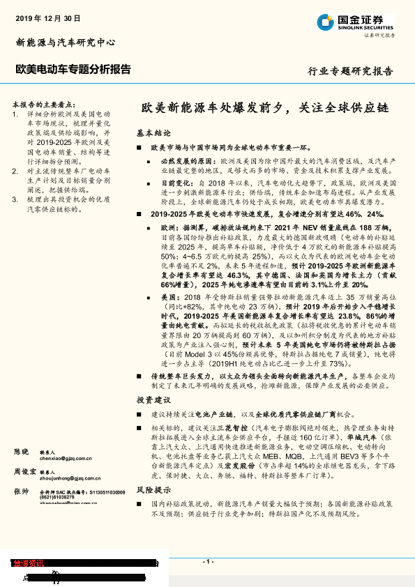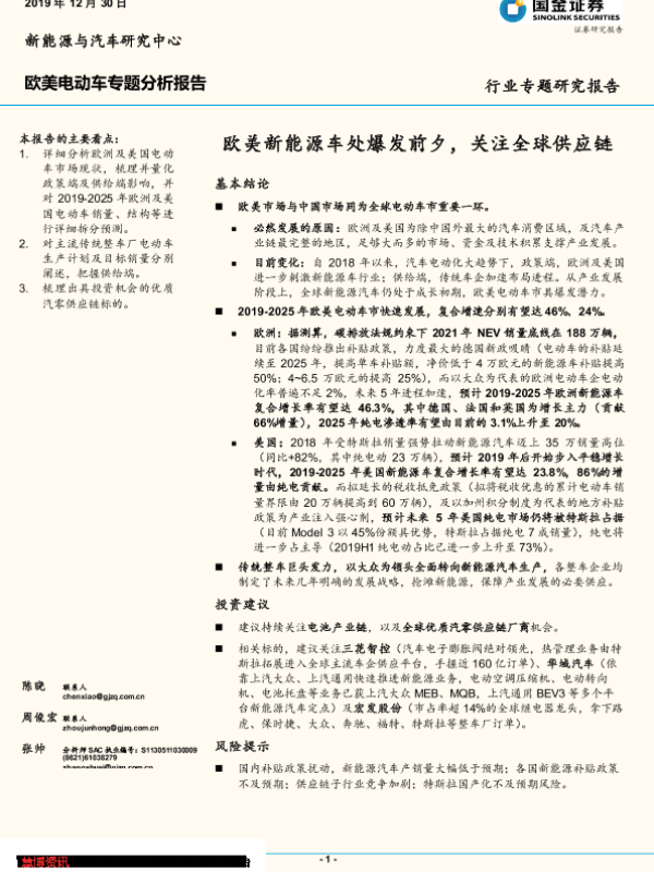 【国金证券】【20191230】欧美电动车专题分析报告:欧美新能源车处爆发前夕,关注全球供应链-20页