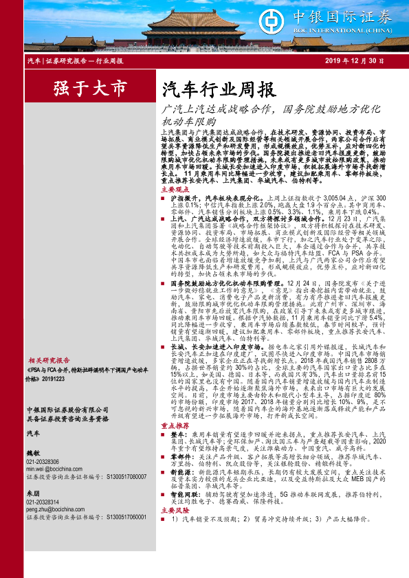 【中银证券】【20191230】20191230-中银证券-汽车行业周报:广汽上汽达成战略合作,国务院鼓励地方优化机动车限购-15页