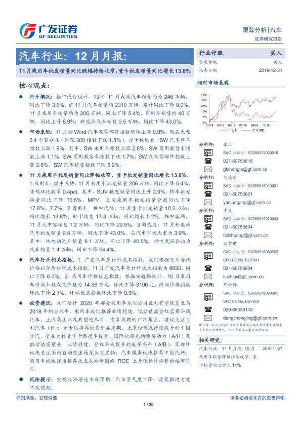 【广发证券】【20191231】12月月报:11月乘用车批发销量同比跌幅持续收窄,重卡批发销量同比增长13.8%-25页