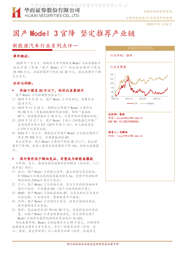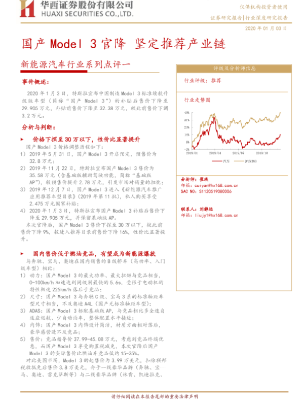 【华西证券】【20200103】20200103-华西证券-新能源汽车行业系列点评一:国产Model 3官降 坚定推荐产业链-7页