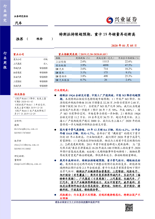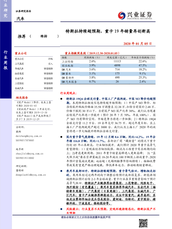 【兴业证券】【20200105】20200105-兴业证券-汽车行业周报:特斯拉持续超预期,重卡19年销量再创新高-18页