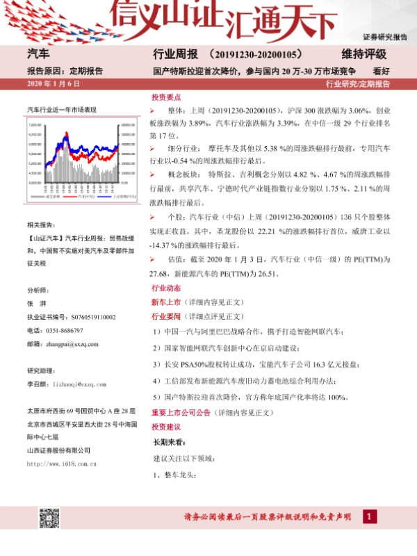 【山西证券】【20200106】20200106-山西证券-汽车行业周报:国产特斯拉迎首次降价,参与国内20万-30万市场竞争-14页
