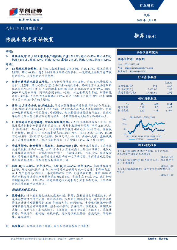 【华创证券】【20200109】20200109-华创证券-汽车行业12月销量点评:传统车需求开始恢复-13页