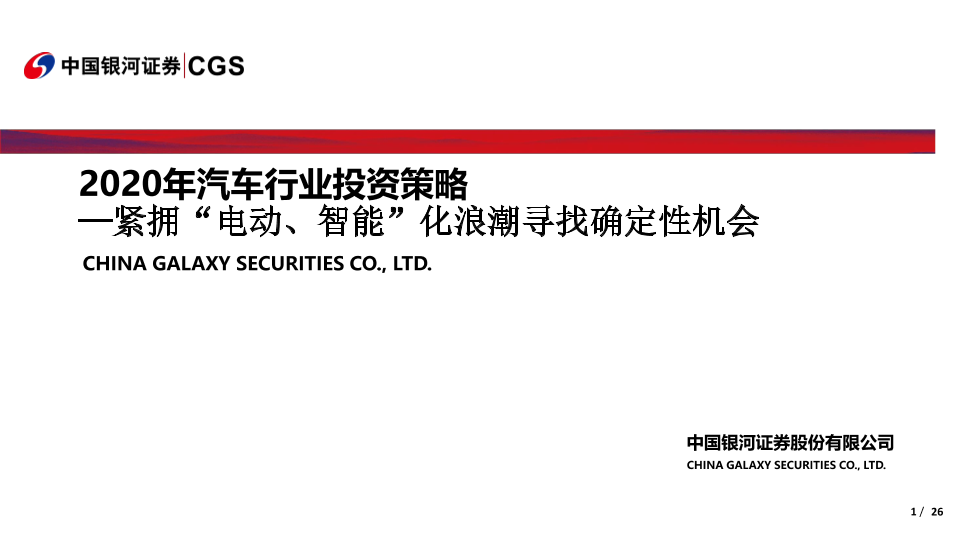 【银河证券】【20200108】2020年汽车行业投资策略:紧拥“电动、智能”化浪潮寻找确定性机会-26页