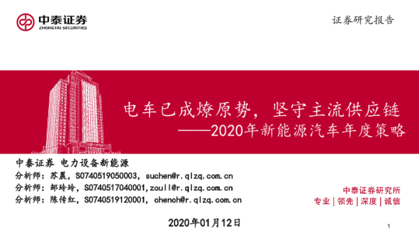 【中泰证券】【20200112】2020年新能源汽车年度策略:电车已成燎原势,坚守主流供应链-70页