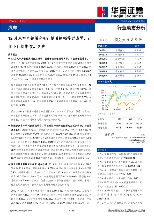 【华金证券】【20200113】12月汽车产销量分析:销量降幅接近为零,行业下行周期接近尾声-15页