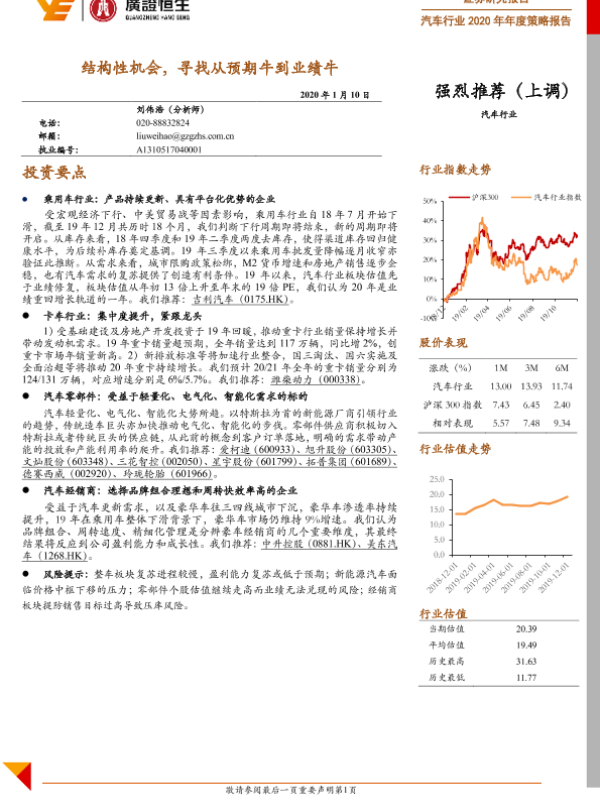 【广证恒生】【20200110】汽车行业2020年年度策略报告:结构性机会,寻找从预期牛到业绩牛-55页