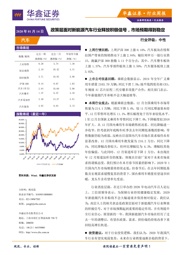 【华鑫证券】【20200114】20200114-华鑫证券-汽车行业周报:政策层面对新能源汽车行业释放积极信号,市场预期得到稳定-19页