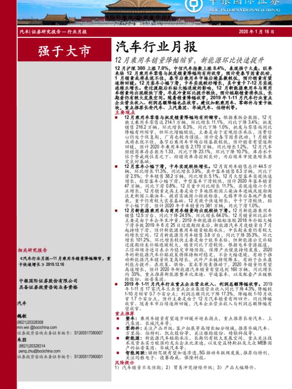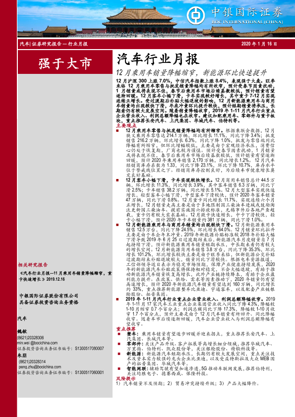 【中银证券】【20200116】12月乘用车销量降幅缩窄,新能源环比快速提升-16页