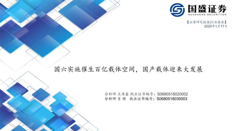 【国盛证券】【20200117】国六实施催生百亿载体空间,国产载体迎来大发展-29页