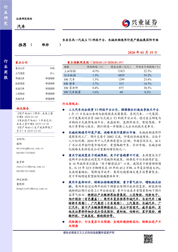 【兴业证券】【20200119】长安东风一汽成立T3科技平台,长城收购通用印度产能拓展国际市场-17页