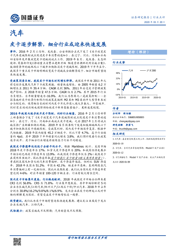 【国盛证券】【20200120】汽车:皮卡逐步解禁,细分行业或迎来快速发展-6页