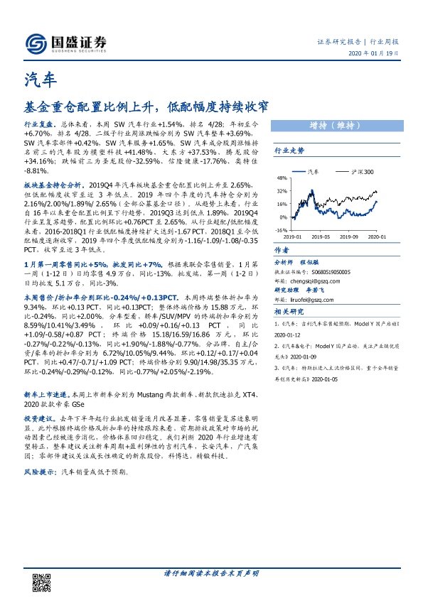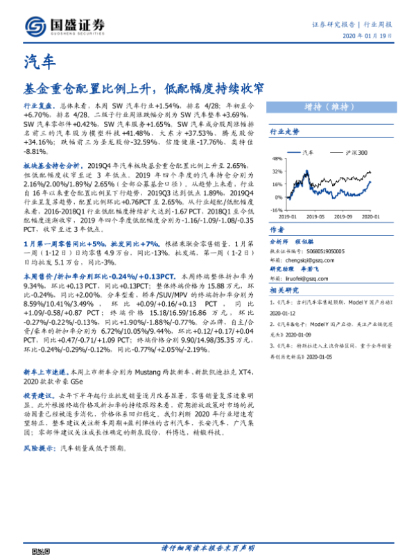 【国盛证券】【20200119】20200119-国盛证券-汽车行业周报:基金重仓配置比例上升,低配幅度持续收窄-16页