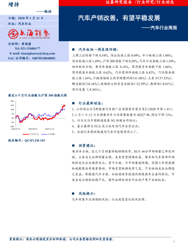 【上海证券】【20200121】20200121-上海证券-汽车行业周报:汽车产销改善,有望平稳发展-7页