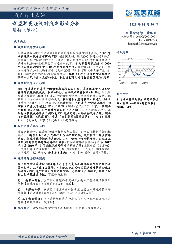 【东吴证券】【20200130】20200130-东吴证券-汽车行业点评:新型肺炎疫情对汽车影响分析-9页