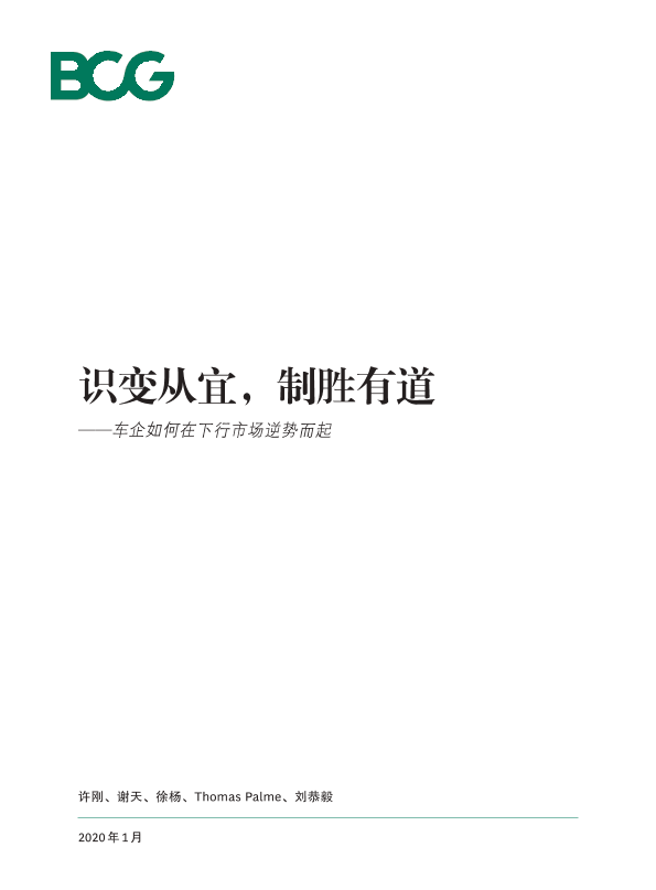 【波士顿咨询公司】【202001】车企如何在下行市场逆势而起:识变从宜,制胜有道-24页