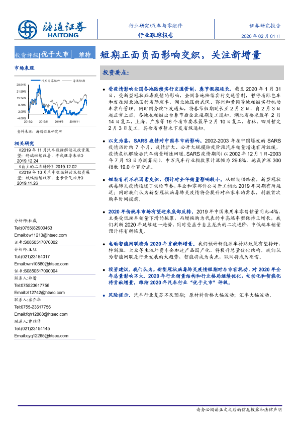 【海通证券】【20200201】汽车与零配件:短期正面负面影响交织,关注新增量-4页