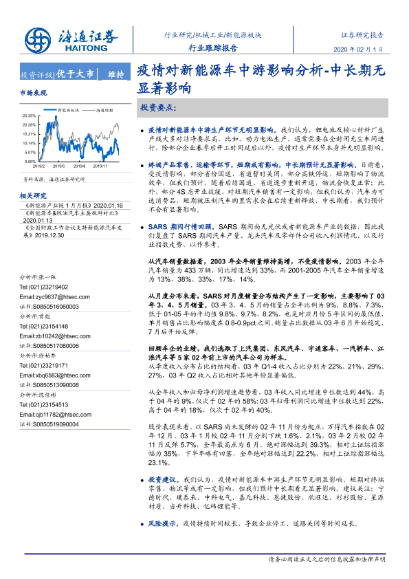 【海通证券】【20200201】20200201-海通证券-新能源板块行业跟踪报告:疫情对新能源车中游影响分析-中长期无显著影响-4页
