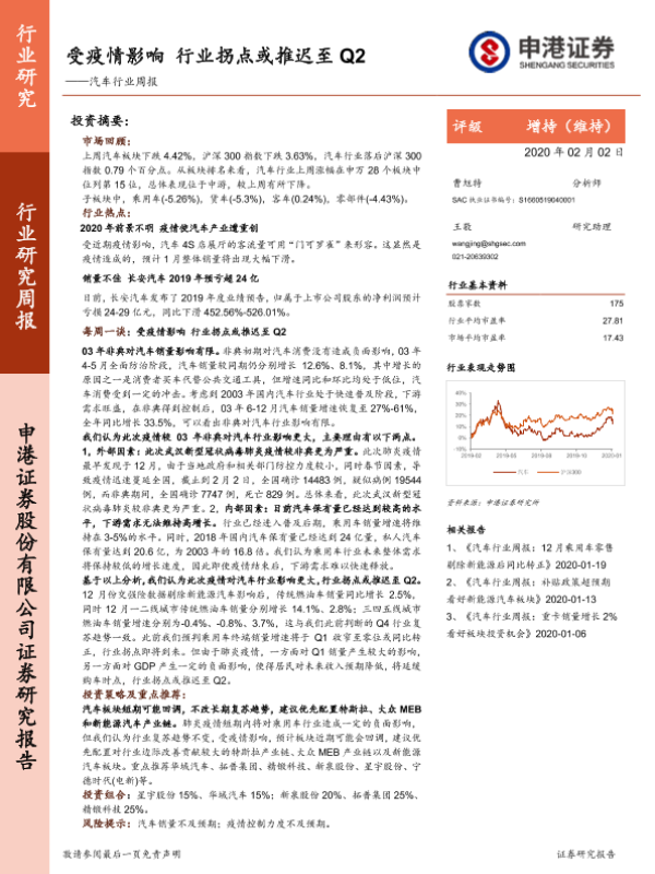 【申港证券】【20200202】20200202-申港证券-汽车行业周报:受疫情影响 行业拐点或推迟至Q2-24页
