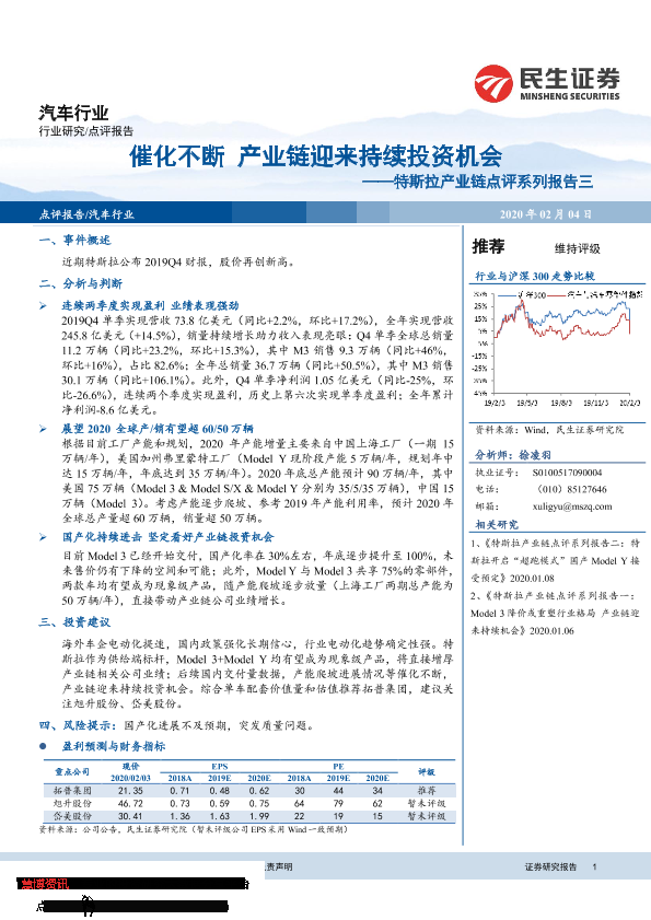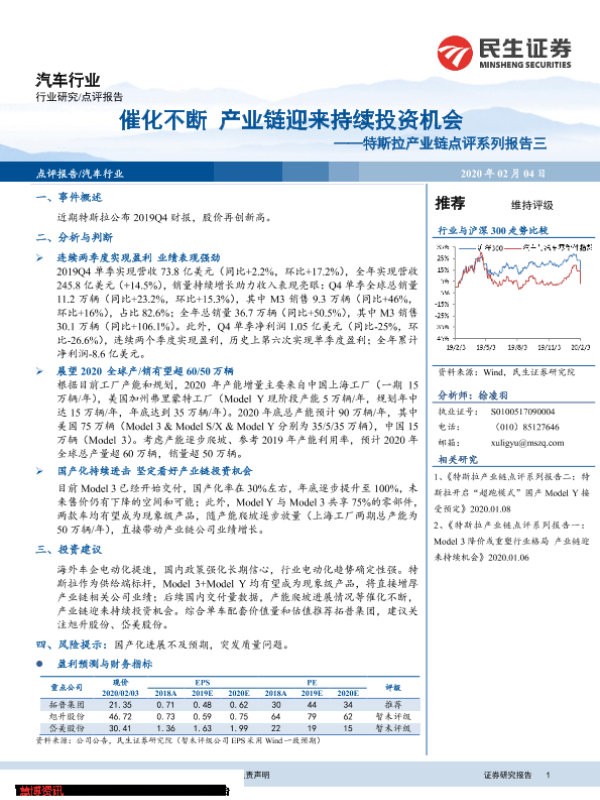 【民生证券】【20200204】特斯拉产业链点评系列报告三:催化不断 产业链迎来持续投资机会-3页