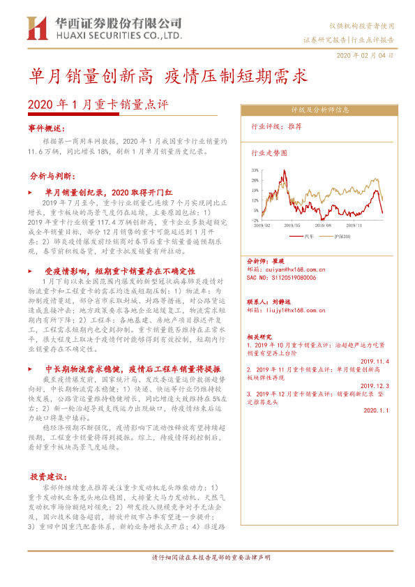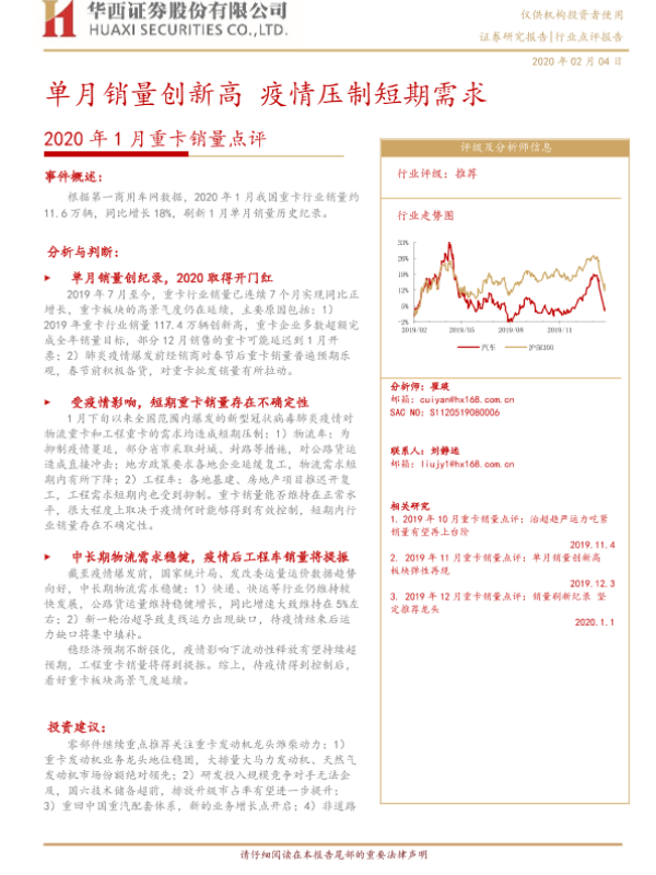 【华西证券】【20200204】2020年1月重卡销量点评:单月销量创新高 疫情压制短期需求-6页