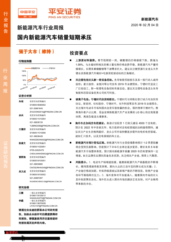 【平安证券】【20200204】20200204-平安证券-新能源汽车行业周报:国内新能源汽车销量短期承压-10页