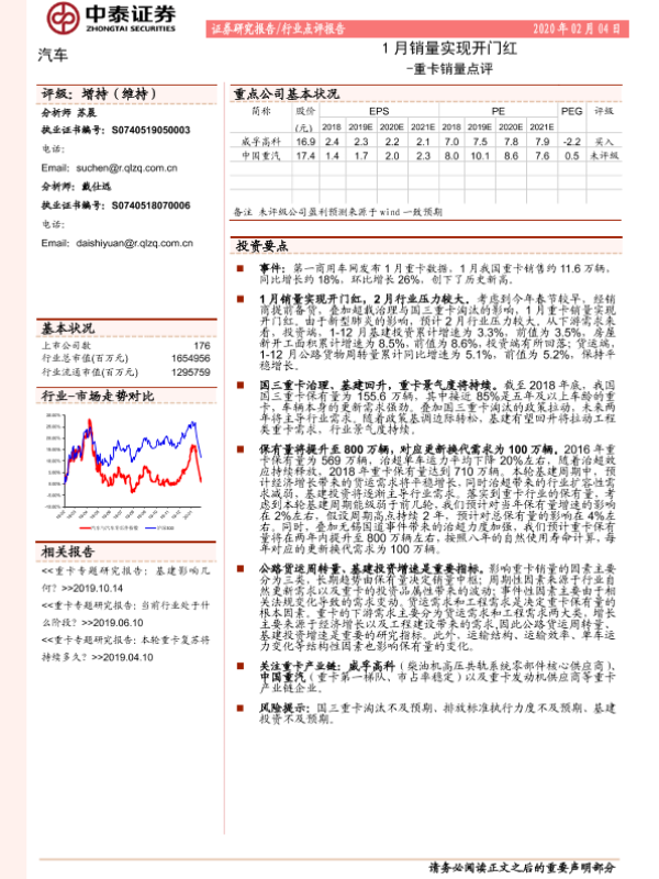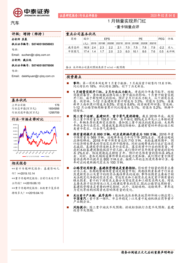 【中泰证券】【20200204】汽车:重卡销量点评-1月销量实现开门红-3页