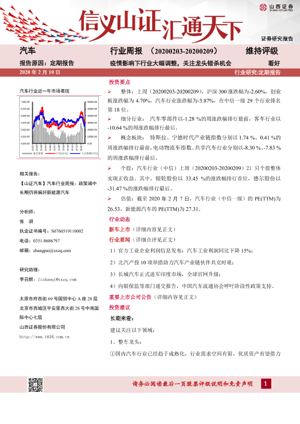 【山西证券】【20200210】20200210-山西证券-汽车行业周报:疫情影响下行业大幅调整,关注龙头错杀机会-14页