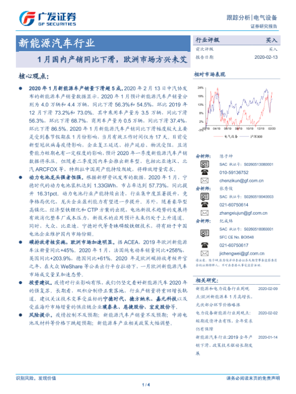 【广发证券】【20200213】新能源汽车行业:1月国内产销同比下滑,欧洲市场方兴未艾-4页