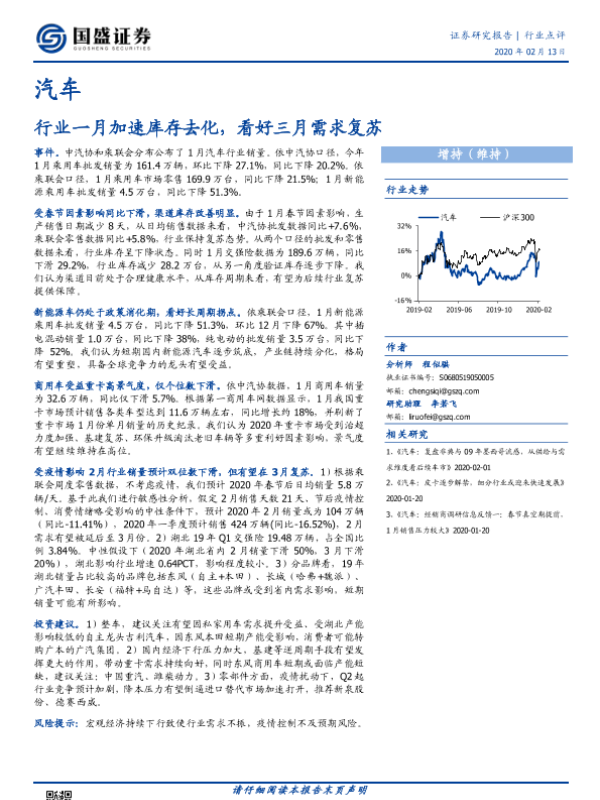 【国盛证券】【20200213】汽车:行业一月加速库存去化,看好三月需求复苏-2页