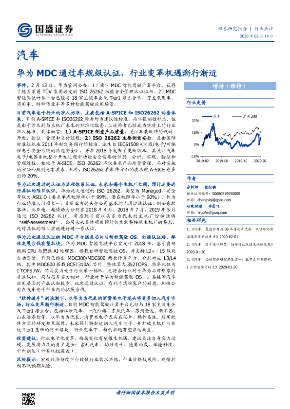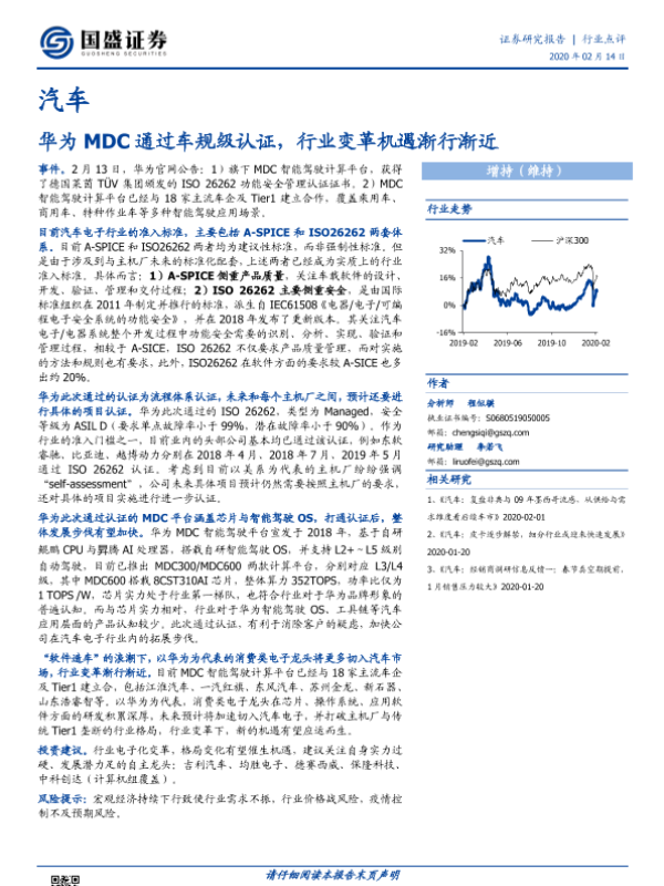 【国盛证券】【20200214】汽车:华为MDC通过车规级认证,行业变革机遇渐行渐近-2页