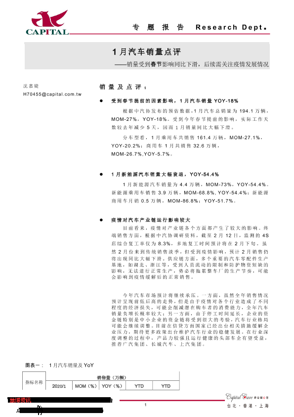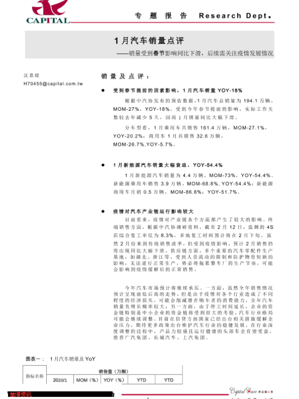 【群益证券】【20200214】1月汽车销量点评:销量受到春节影响同比下滑,后续需关注疫情发展情况-2页