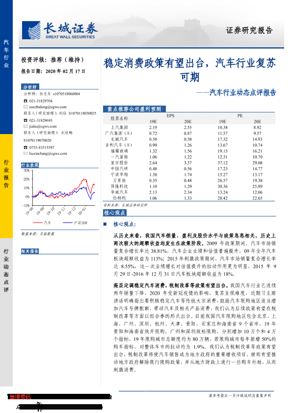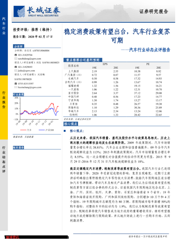 【长城证券】【20200217】20200217-长城证券-汽车行业动态点评报告:稳定消费政策有望出台,汽车行业复苏可期-3页