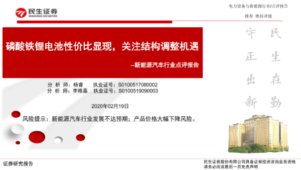 【民生证券】【20200219】新能源汽车行业点评报告:磷酸铁锂电池性价比显现,关注结构调整机遇-6页