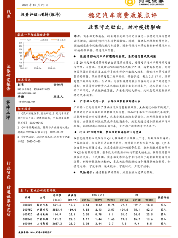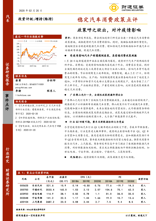 【财通证券】【20200220】稳定汽车消费政策点评:政策呼之欲出,对冲疫情影响-5页