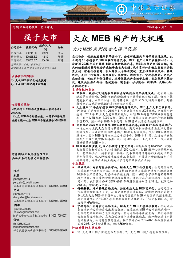 【中银证券】【20200218】汽车行业深度:大众MEB系列报告之国产化篇-大众MEB国产的大机遇-36页