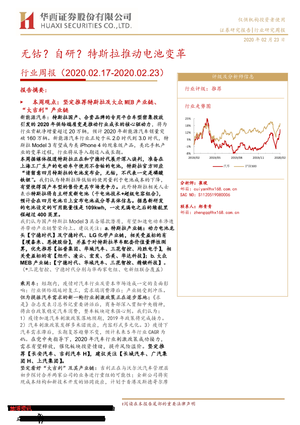 【华西证券】【20200223】20200223-华西证券-汽车行业研究周报:无钴?自研?特斯拉推动电池变革-20页
