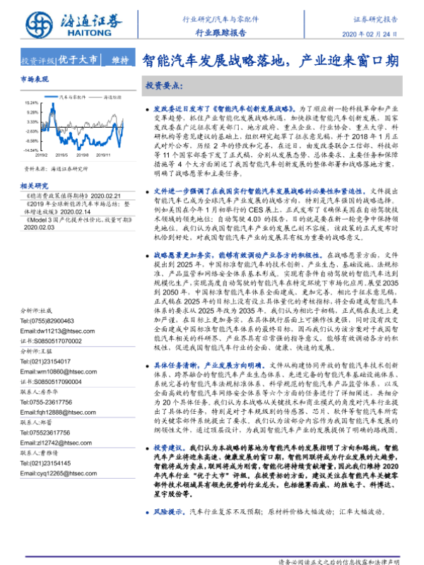 【海通证券】【20200224】汽车与零配件行业跟踪报告:智能汽车发展战略落地,产业迎来窗口期-2页