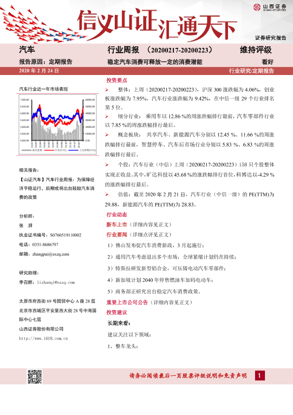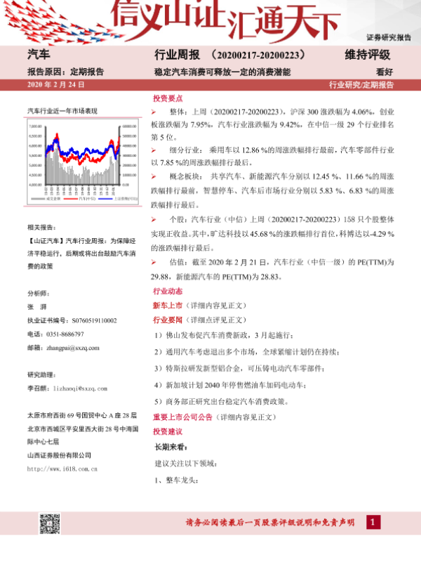 【山西证券】【20200224】20200224-山西证券-汽车行业周报:稳定汽车消费可释放一定的消费潜能-14页