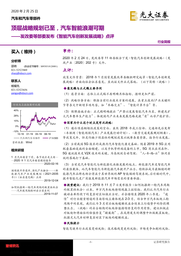 【光大证券】【20200225】发改委等部委发布《智能汽车创新发展战略》点评:顶层战略规划已至,汽车智能浪潮可期-3页